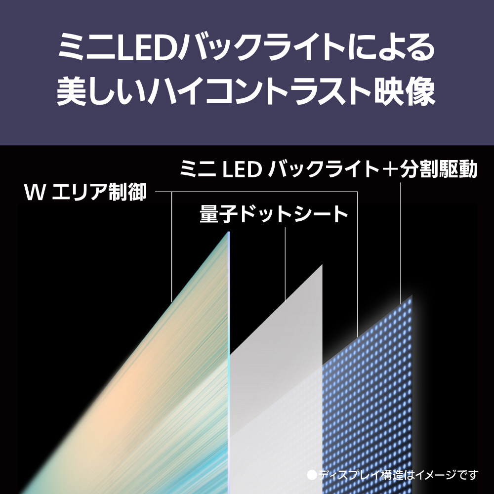 ミニLEDバックライト液晶と量子ドットシートで明るく高コントラストかつ色あざやかな映像を実現
