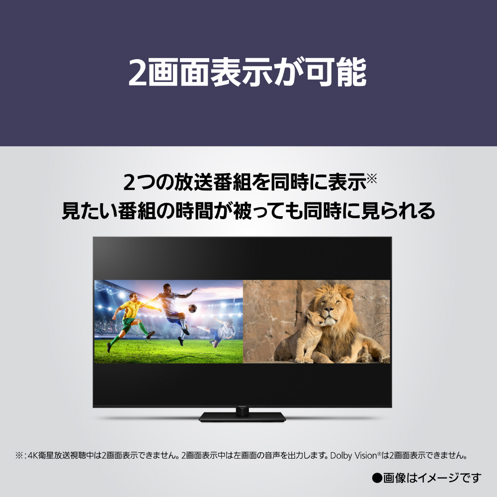 4K衛星放送録画(USBハードディスク使用時)、過去未来番組表(ディーガ連携)、お部屋ジャンプリンク※1、Panasonic Media Access、LANダビング※2の機能は、2024年内を目途にアップデート対応となります。