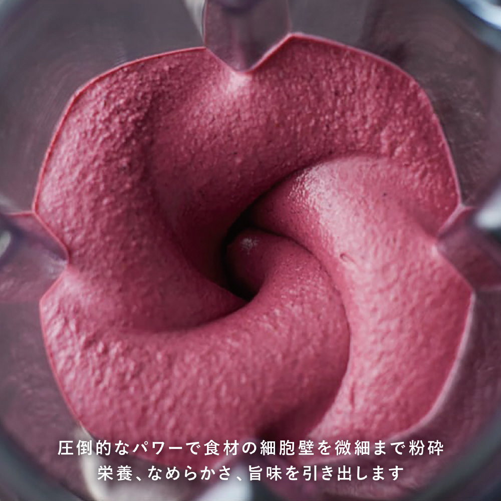 オールラウンドクッキングタイプ V1200i は、その圧倒的なパワーにより、滑らかな仕上がりを実現し、食材の細胞壁を微細まで粉砕することで体への吸収を高めることができるハイパワーブレンダーです。料理にとって非常に便利なモデルであり、さらに専用アクセサリーを使うことで、料理の下ごしらえや少量のみじん切り、パン生地の生成、オリジナルだしの調理などが可能です。
