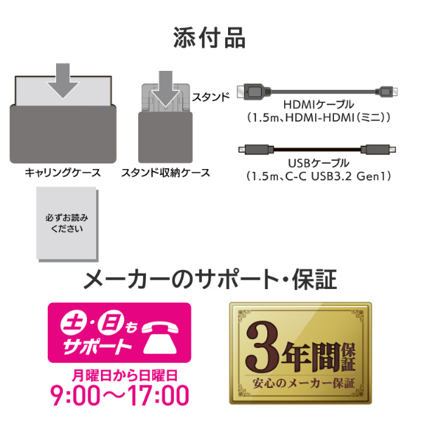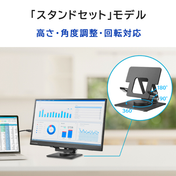 本商品は一般的なノートパソコンより画面の大きい17.3型モバイルディスプレイで高さ・角度調整・回転対応の「スタンドセット」モデルです。
