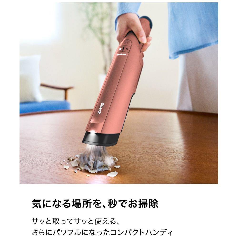 シャークのベストセラーEVOPOWERの設計を一から見直し、三世代目にフルモデルチェンジ。机や棚の上に置いておけるコンパクトなデザインだから、サッと取って気になる場所を、秒でお掃除。