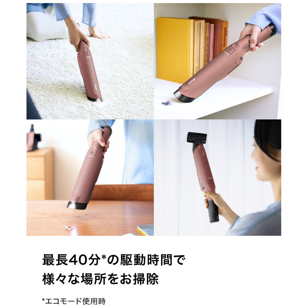 エコモード時に最大40分の駆動時間で、家中さまざまな場所を充電切れの心配をすることなく、満足いくまでお掃除が可能。ハンディだから部屋間の移動もラクラク。