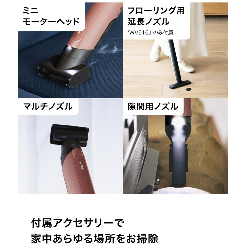 付属のアクセサリーを使用することでリビング、キッチン、寝室、洗面台など狭い箇所から広い床面まで、家中の様々な場所や汚れに合ったお掃除が可能。ハンディだから部屋間の持ち運びもラクラクで、これ一台でいつでも部屋を清潔に保てる。