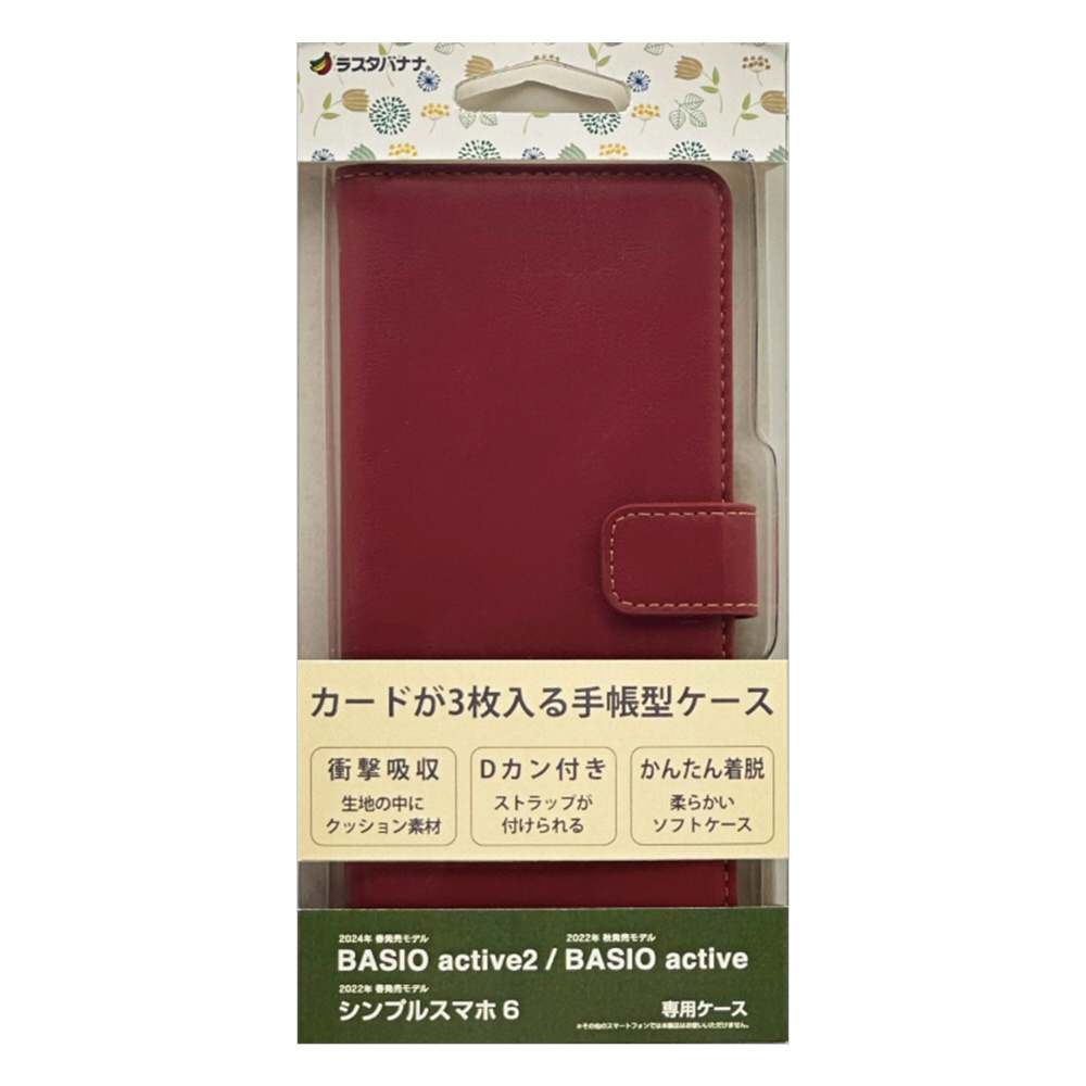 BASIO active2 横型手帳ケース カード3枚 レッド 8006BAA2BYRD 【864】