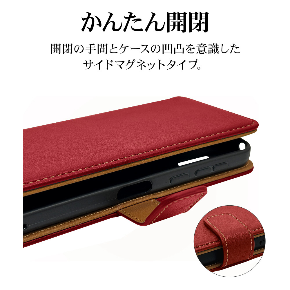 ●ケースをつけたまま、充電コネクターの接続、タッチパネル操作、各種ボタンの操作が可能です。※本製品の開閉にはマグネットを使用しております。磁気カードや磁性のある機器等に近づけないようにしてください。 またスマートフォンの一部機能でマグネットが動作に影響する可能性があります。その場合はケースから機器本体を取り外してご使用ください。