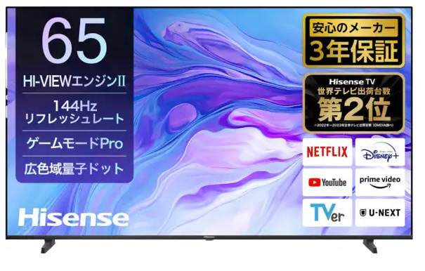 | 商品名 | 液晶テレビ 65U7N [65V型 /Bluetooth対応 /4K対応 /BS・CS 4Kチューナー内蔵 /YouTube対応] |