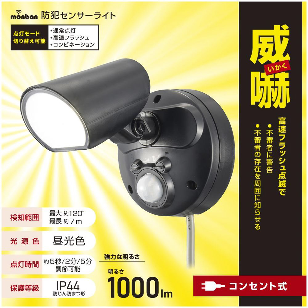 防犯センサーライト[1灯/ コンセント式/ 1000ルーメン] LS-A100A1