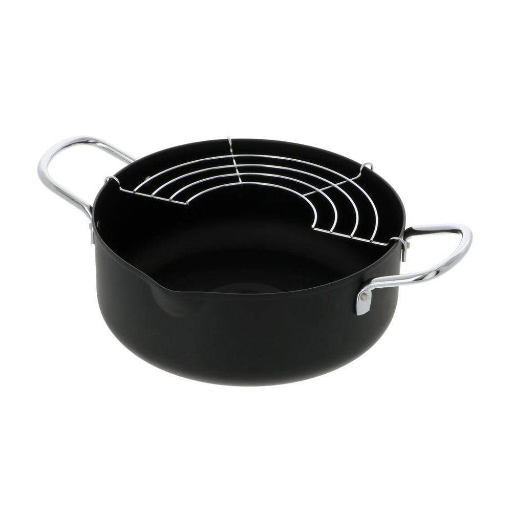 【品質表示】●材料の種類/本体: 鉄(底の厚さ0.7mm)、取っ手・アミ: 鉄 ●表面加工/本体: シリコーン樹脂塗装、取っ手・アミ: クロムメッキ ●寸法/20cm ●満水容量/約2.4L(適正油量/約1.3L)