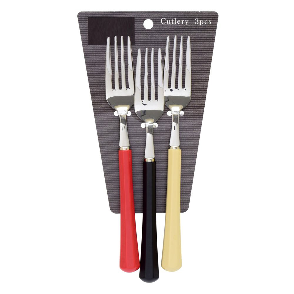 オーロラ デザートフォーク 規格: 3本組 赤・黒・ベージュお菓子やフルーツを食べる際に