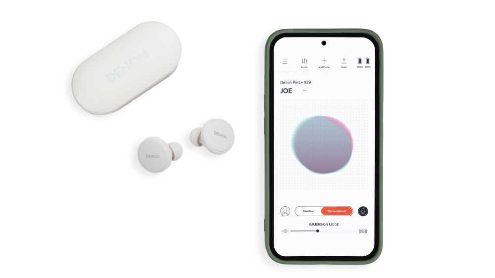 医療技術を応用したパーソナライズ機能で、あなただけのオーダーメイドサウンドを実現する高音質完全ワイヤレスヘッドフォンDENON PerL Proのホワイトバージョン