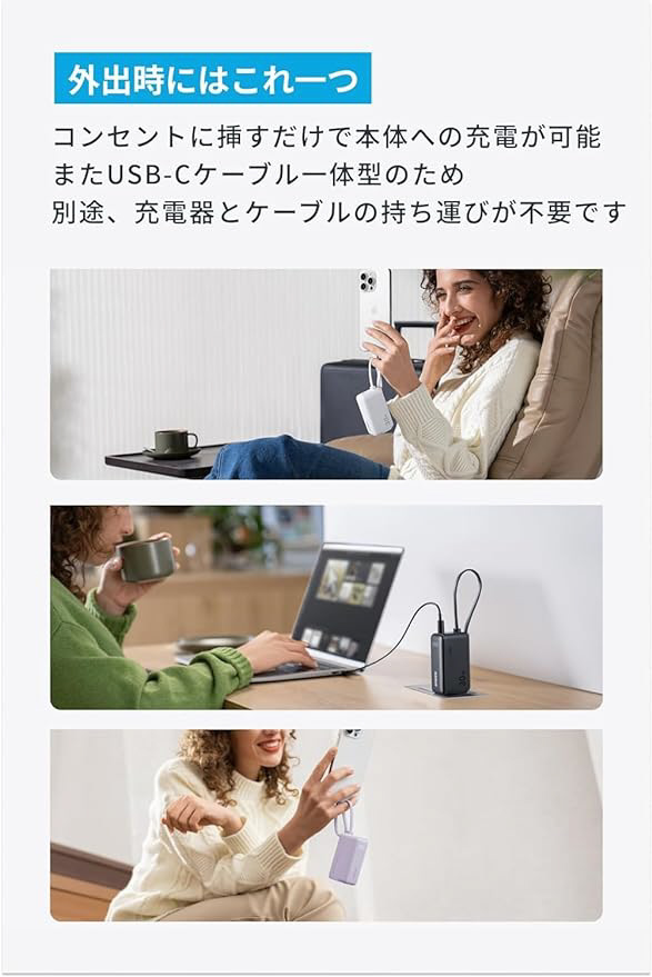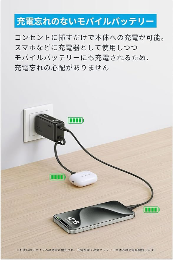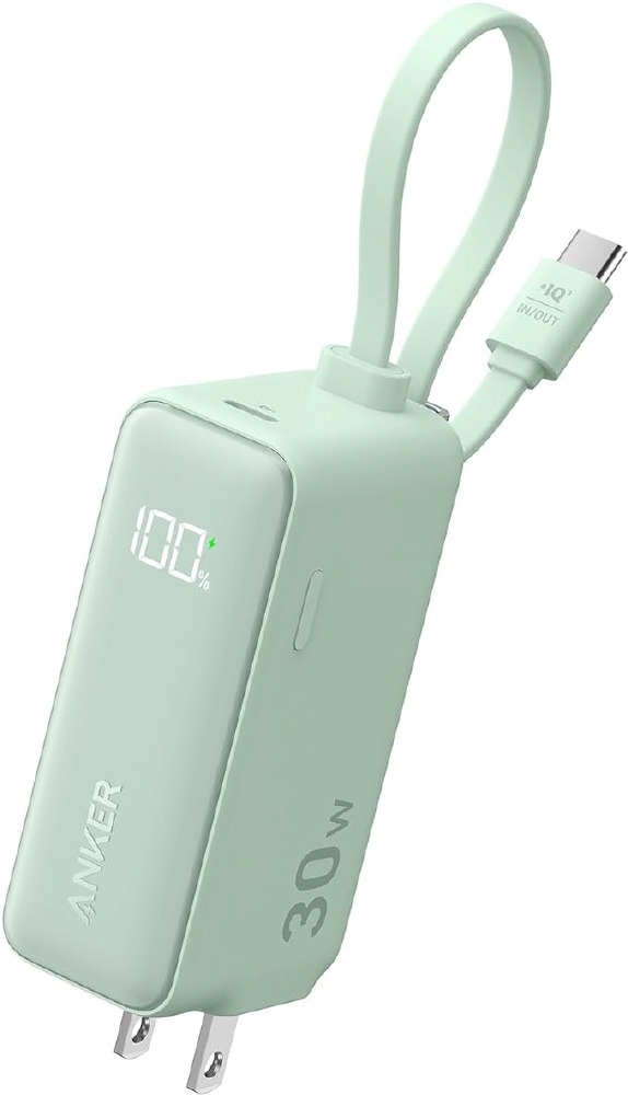 モバイルバッテリー Power Bank (30W、Fusion、Built-In USB-C ケーブル) グリーン A1636N61 [USB Power Delivery対応 /1ポート] 【864】