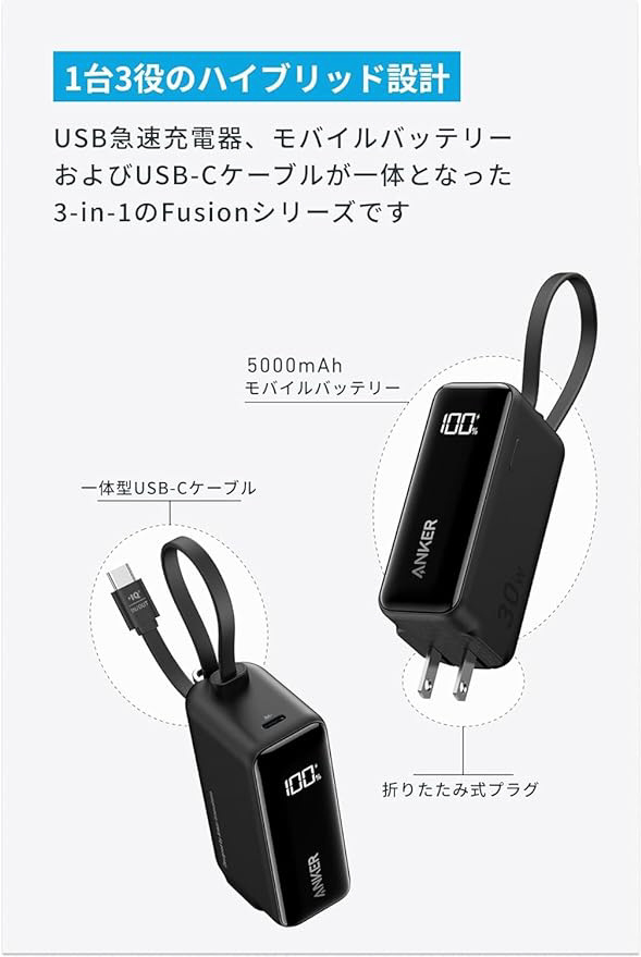 ケーブル一体型の3-in-1 Fusionシリーズ