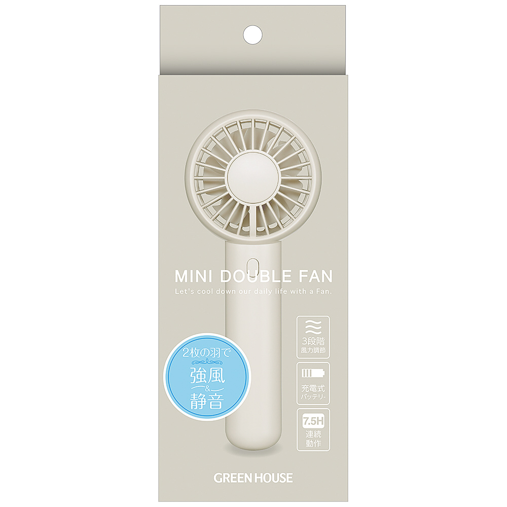 ミニUSB充電式 手持ちダブルファン ベージュ GH-FANHHS-BE
