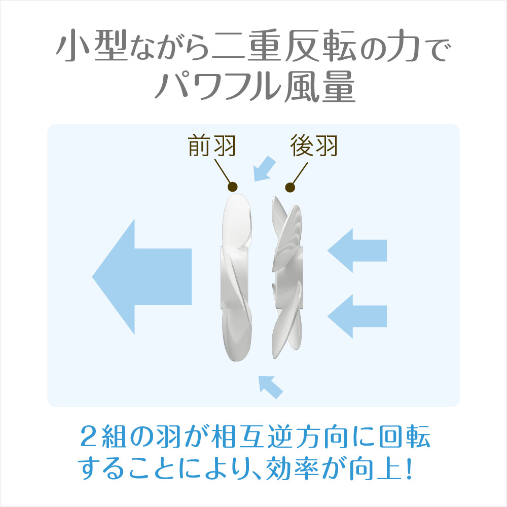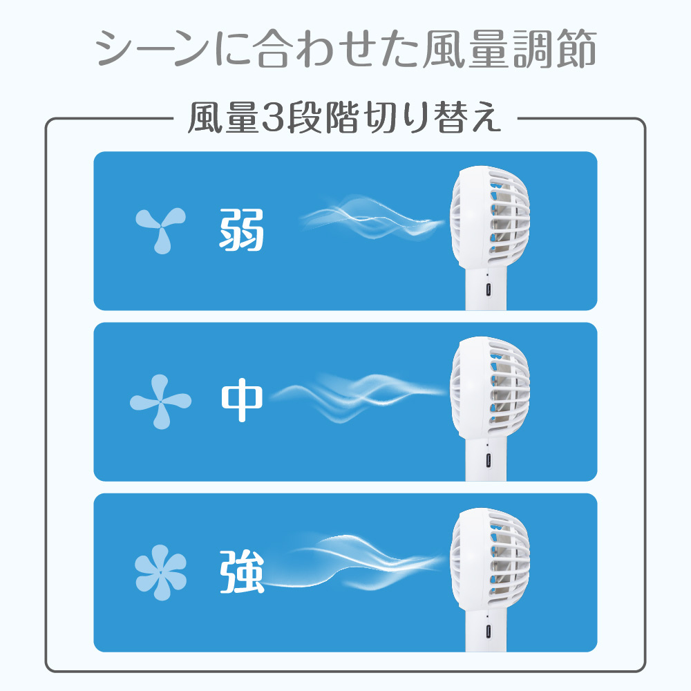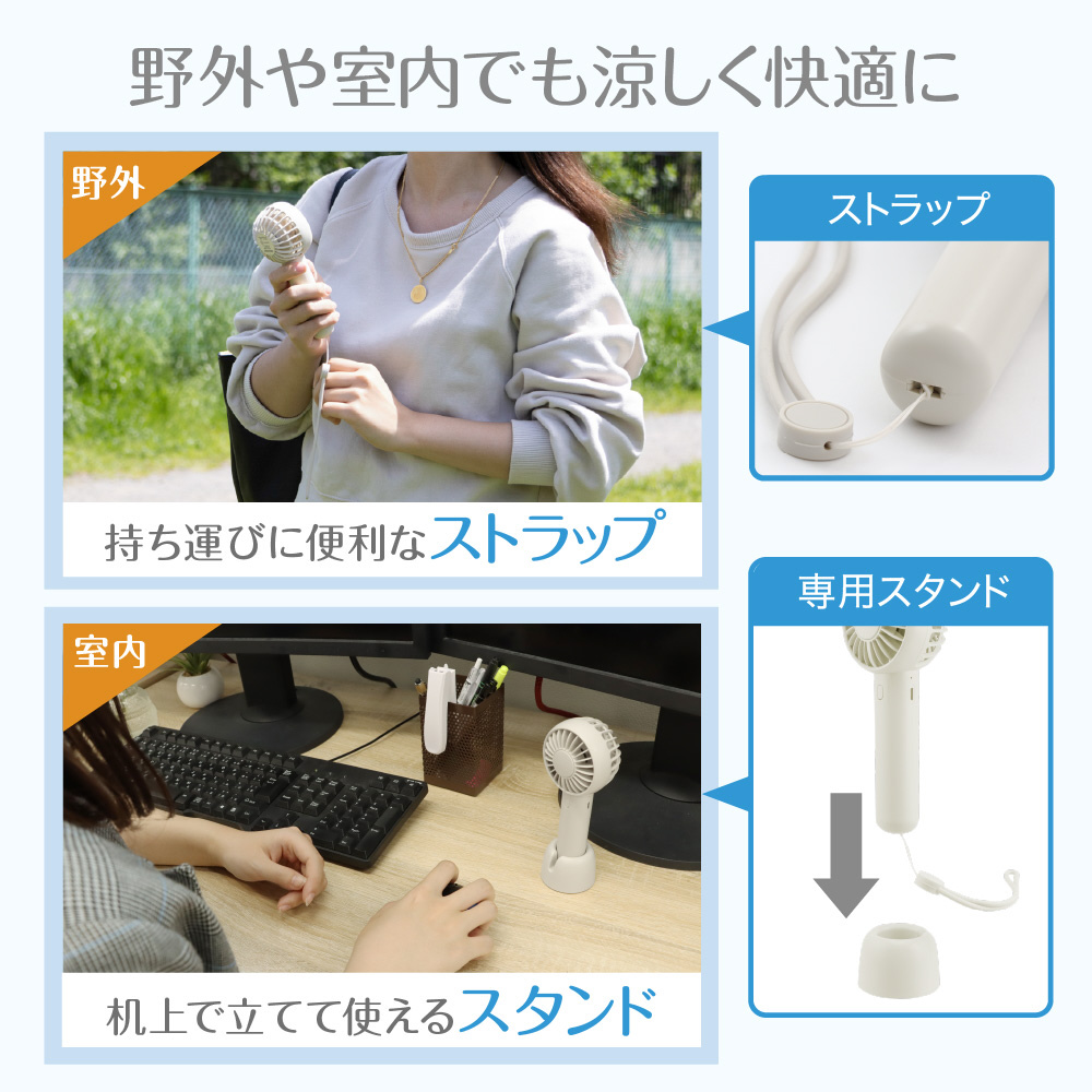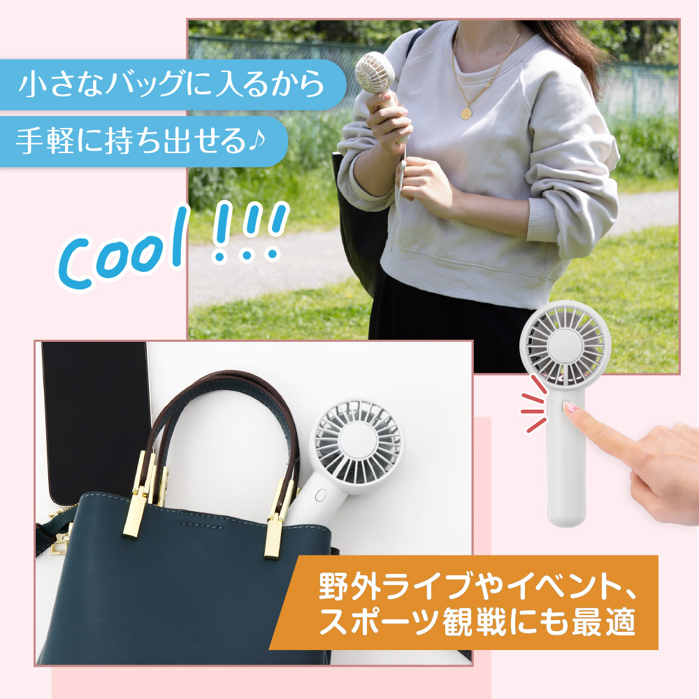2枚羽の力で強風&静音!どこでも持ち運べるミニハンディファン。