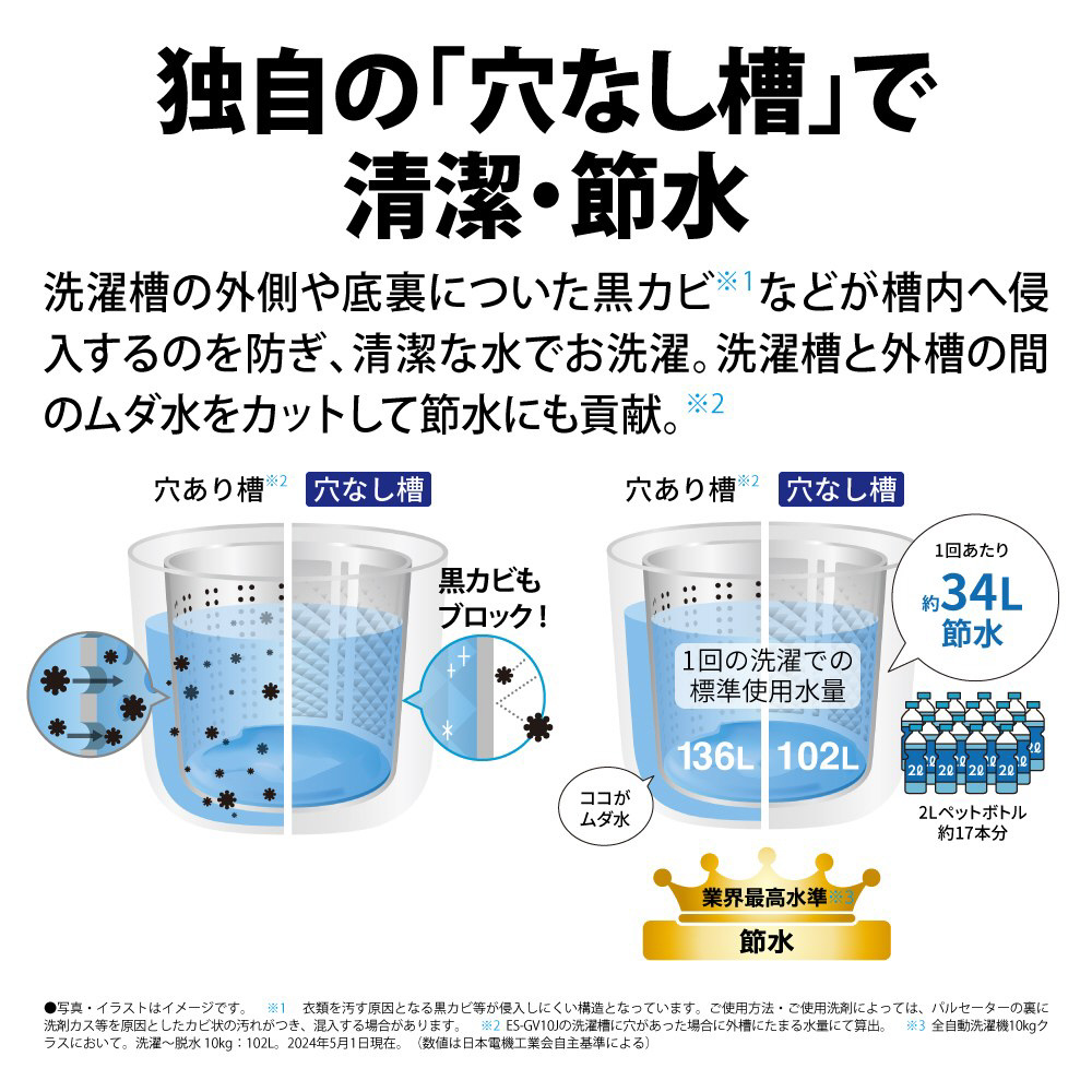 穴なし槽で清潔・節水。大物もしっかり洗濯できる、スタイリッシュな大容量10kgタイプ。