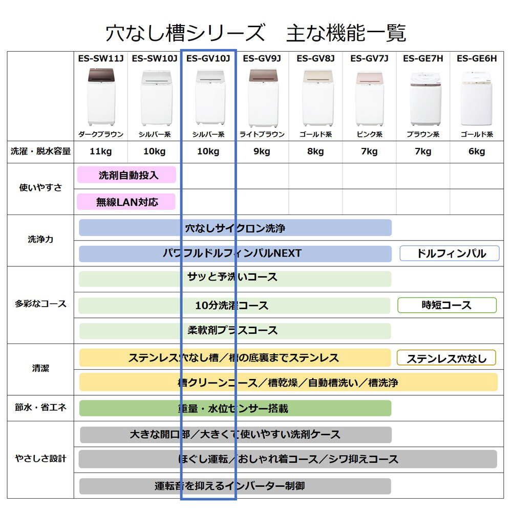 | 商品名 | 全自動洗濯機 シルバー系 ES-GV10J-S [洗濯10.0kg /簡易乾燥(送風機能) /上開き] |