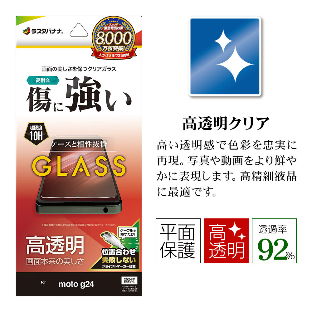 | 商品名 | moto g24 ガラスフィルム 高光沢 0.33mm 位置合わせJM付き クリア GP4243MOG24 |