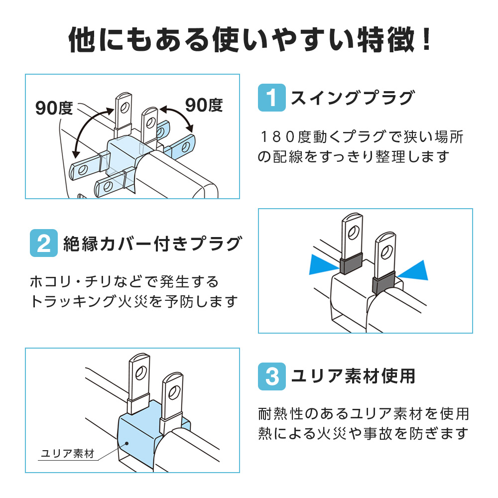 ホコリ・チリなどで発生するトラッキング火災を予防する絶縁カバー付きプラグです。