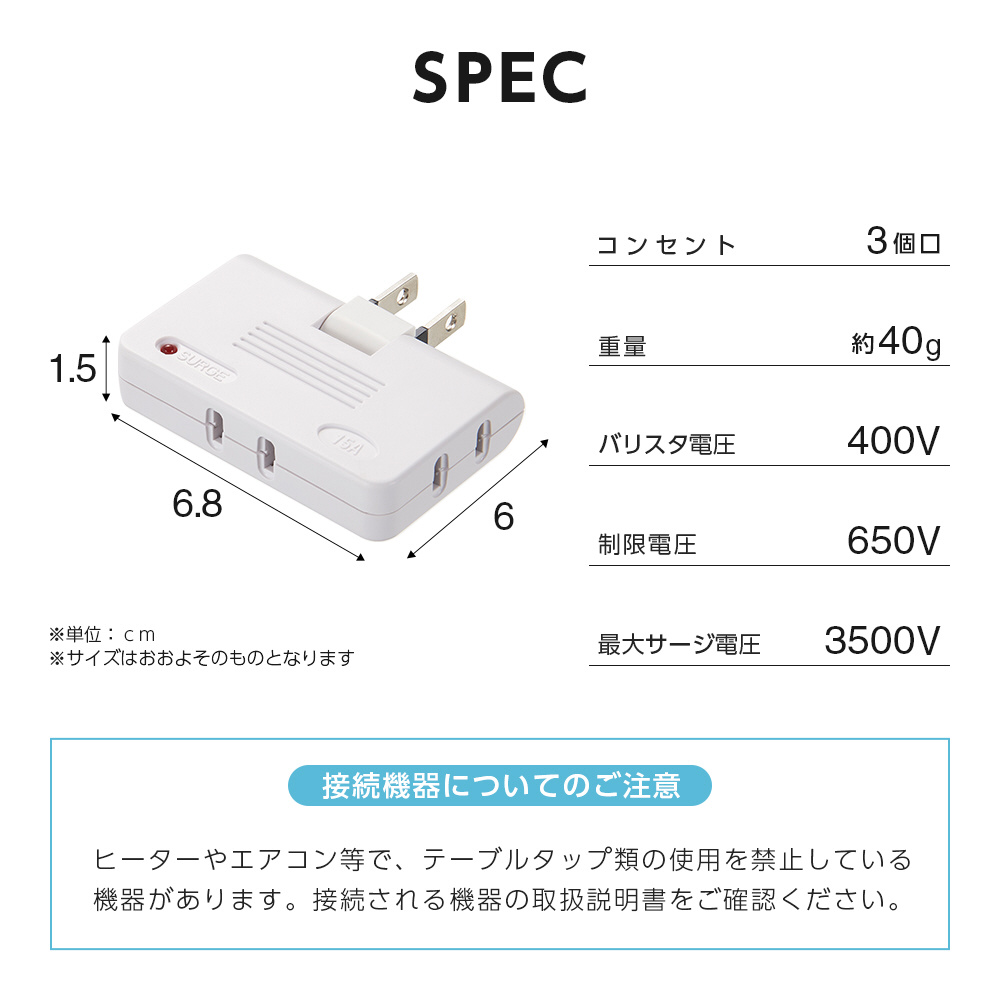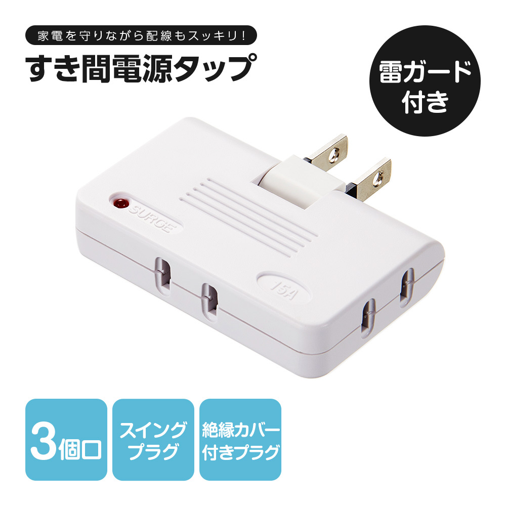 | 商品名 | アイメディア 雷ガード付すき間電源タップ 3個口 1009977 |