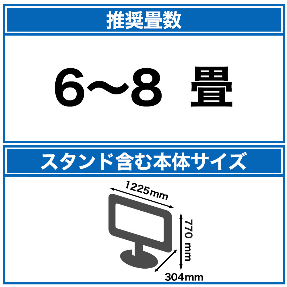| スタンド含む本体サイズ(幅×高さ×奥行)mm | 1225×770×304 |