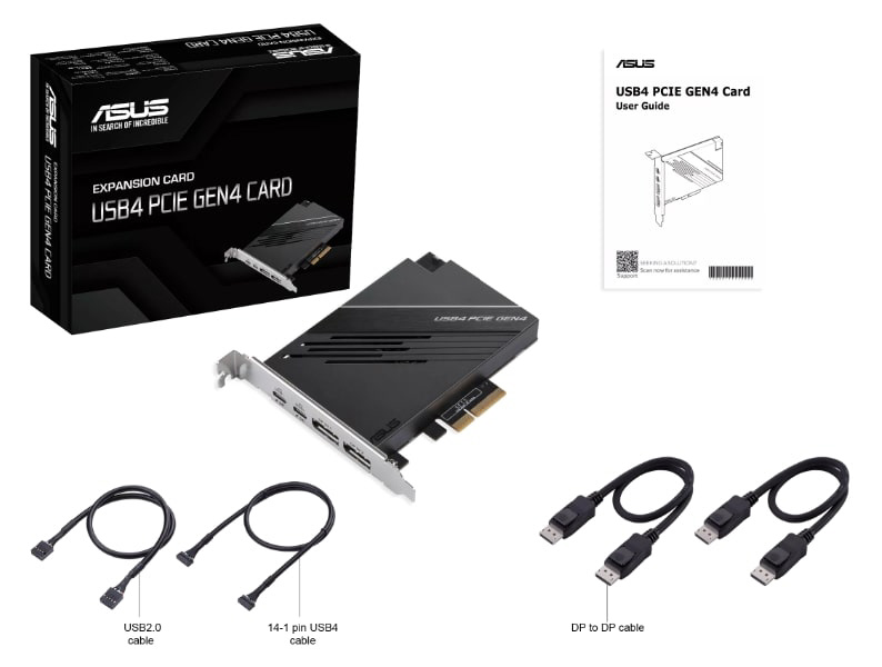 ASUS USB4 PCIe Gen4カード、デュアルUSB4(USB-C)ポート、DisplayPort 1.4、PCIe 4.0 x4インターフェース