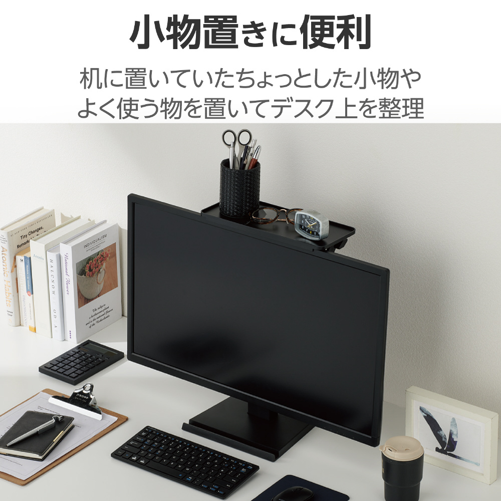 液晶ディスプレイの上を有効に利用して、机に置いていたちょっとした小物やよく使う物を置くことができる軽量ワイドタイプのディスプレイボードです。