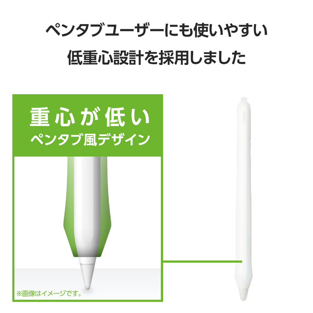 重心が低くバランスがとりやすい。ペンタブ風デザインでペン先から本体まで保護する、Apple Pencil (第2世代)に対応した太ペン軸タイプのシリコン製グリップです。