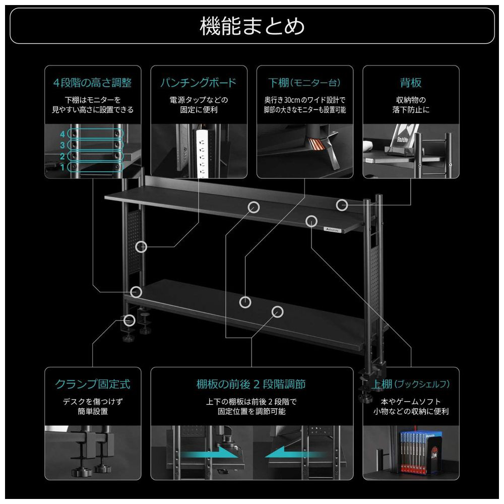 デスクラック2 [W1210xD300xH785mm] モニターアーム対応 BHS-1200HN ホワイト BC-BHS-1200HN-WH