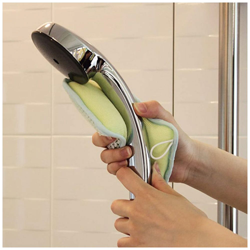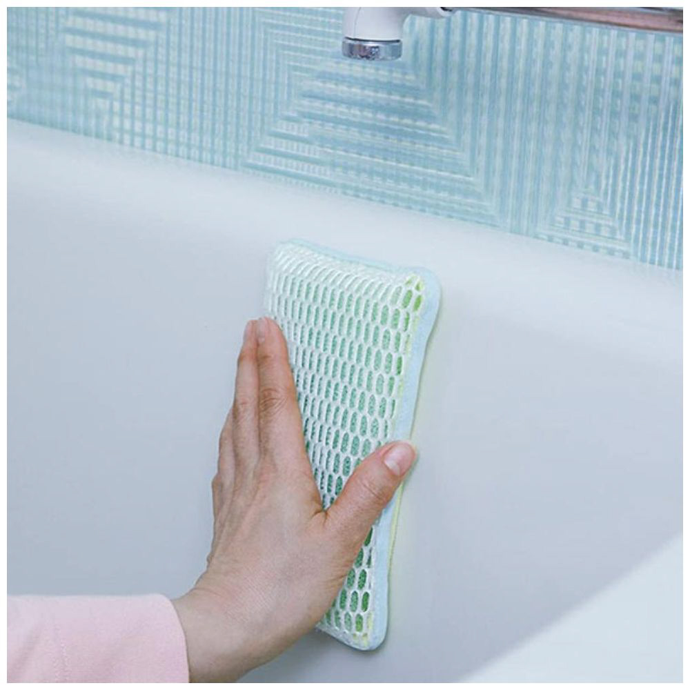 洗剤無しでも汚れを落とす!マイクロファイバーとブラシがセットになった浴室用スポンジ