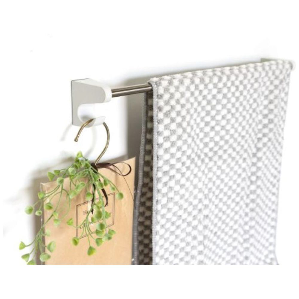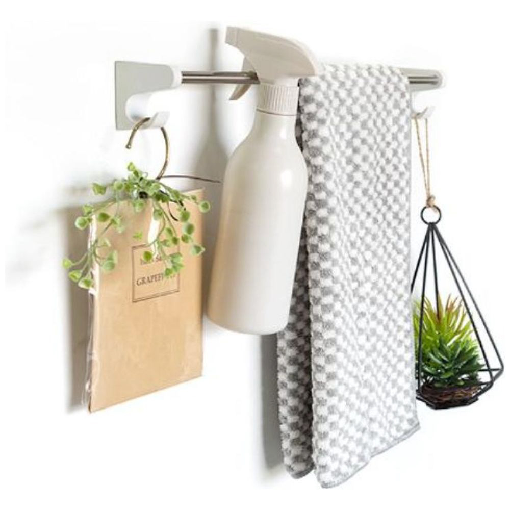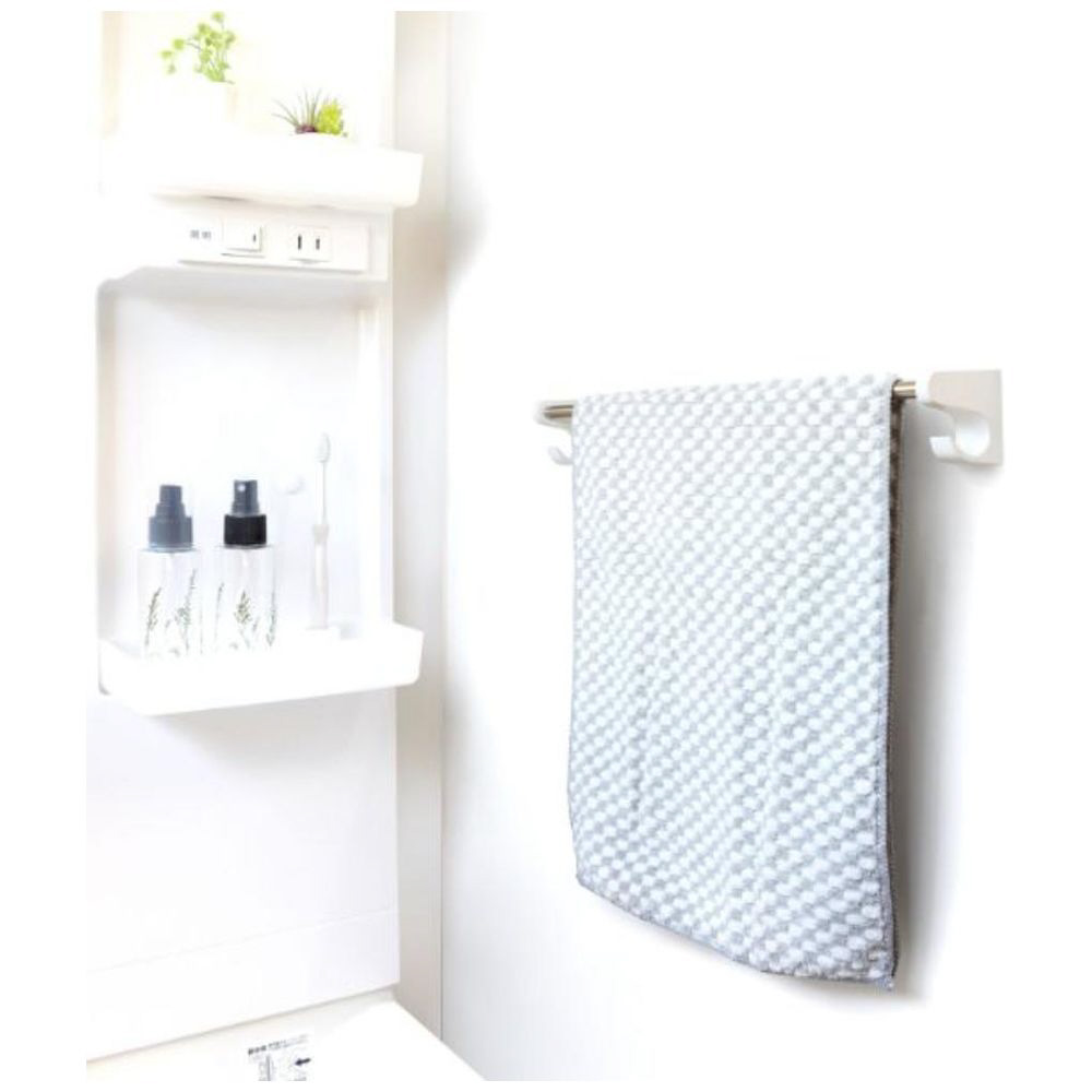 粘着テープで貼り付けるだけ、取り付け簡単。ステンレスタオル掛け。