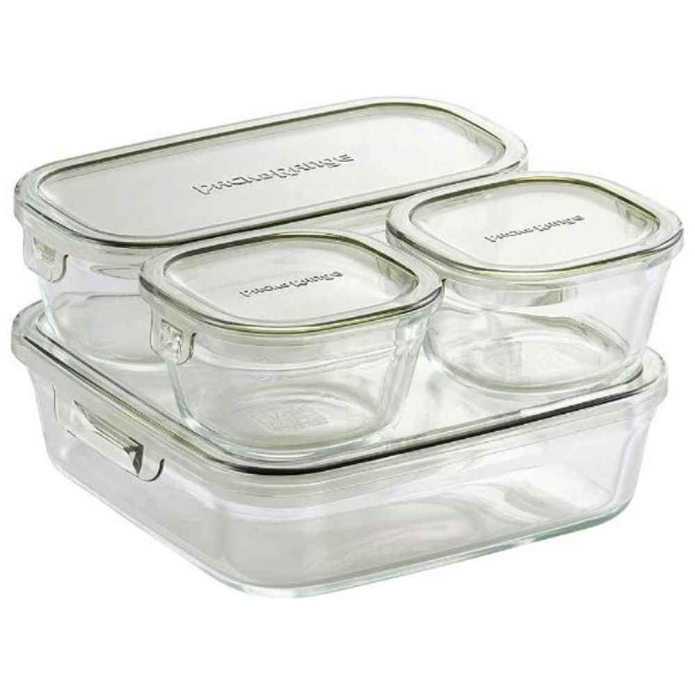 冷蔵庫、電子レンジ、オーブン対応の便利な耐熱ガラス保存容器セット。