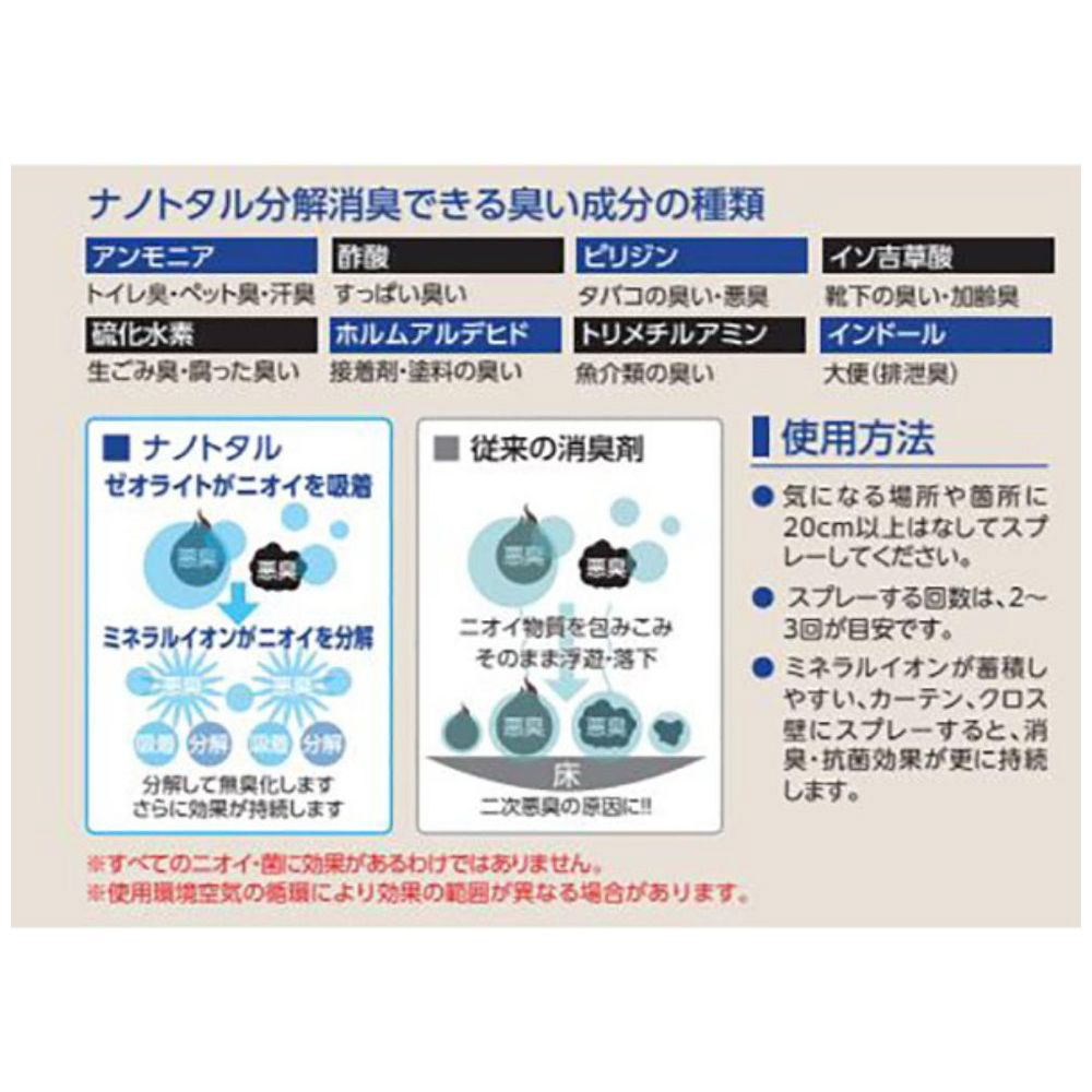 | 商品名 | ナノトタル 消臭抗菌スプレー NS 詰替え用 260ml |