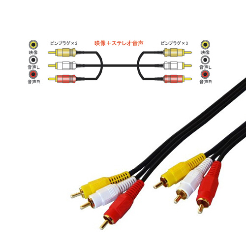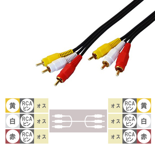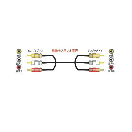 ・ビデオ・DVD・ゲーム機などの映像+ステレオ音声をテレビ等で再生できる、RCAピンプラグケーブルです。