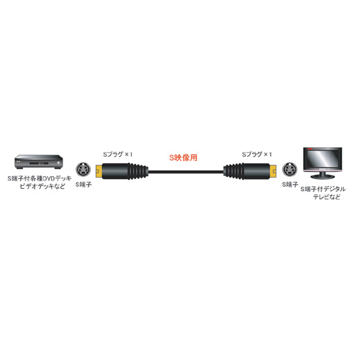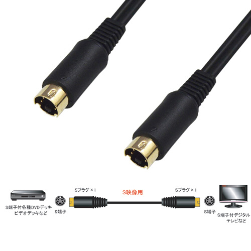 ・S端子ケーブルは色信号と輝度(明るさ)信号を別々に伝送することが出来ますので通常のRCA(コンポジット・ピン)ケーブルに比べてクリアな映像をお楽しみいただけます。