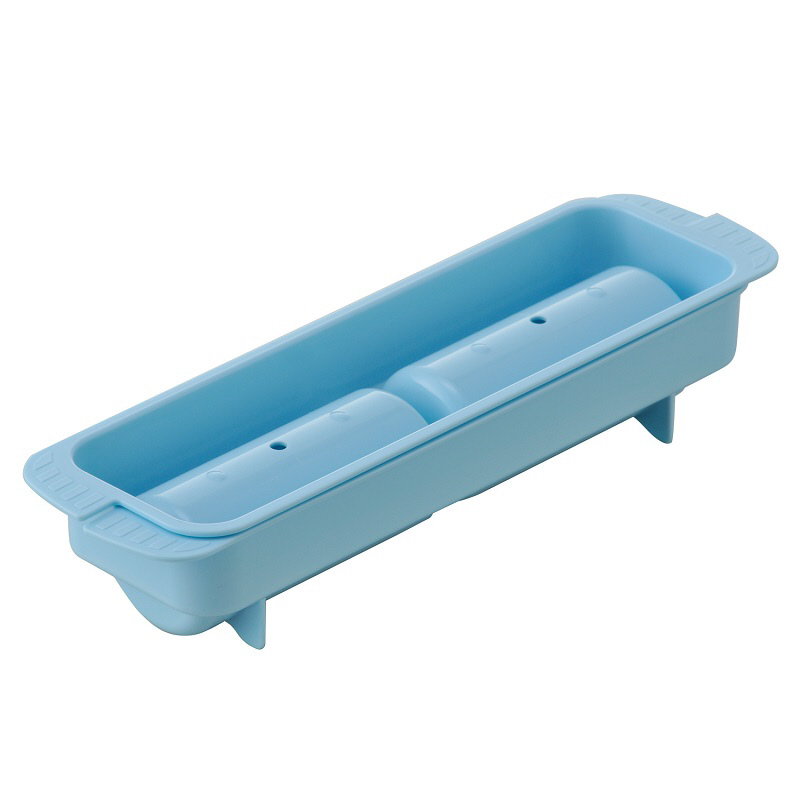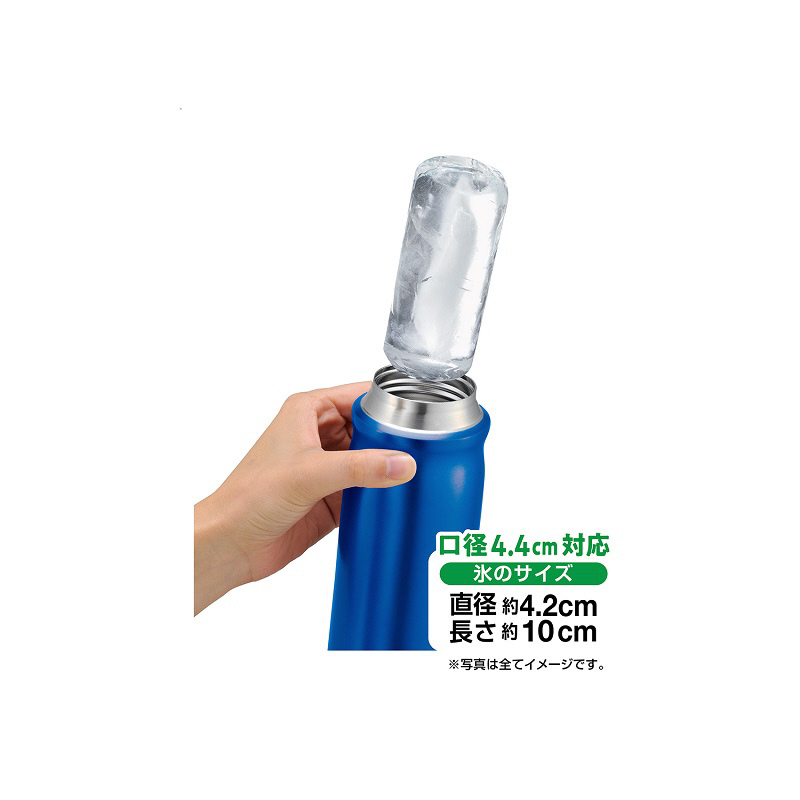 ステンレスボトルにぴったりの大きめ円柱氷が作れるアイストレー。一度に2個の氷が作れる。口径4.4cm対応。溶けるスピードがゆっくりで長持ち。容量0.35L以上のボトルに1個、1Lのボトルに2個の氷が入るので、容量が多いスポーツタイプの水筒に最適。