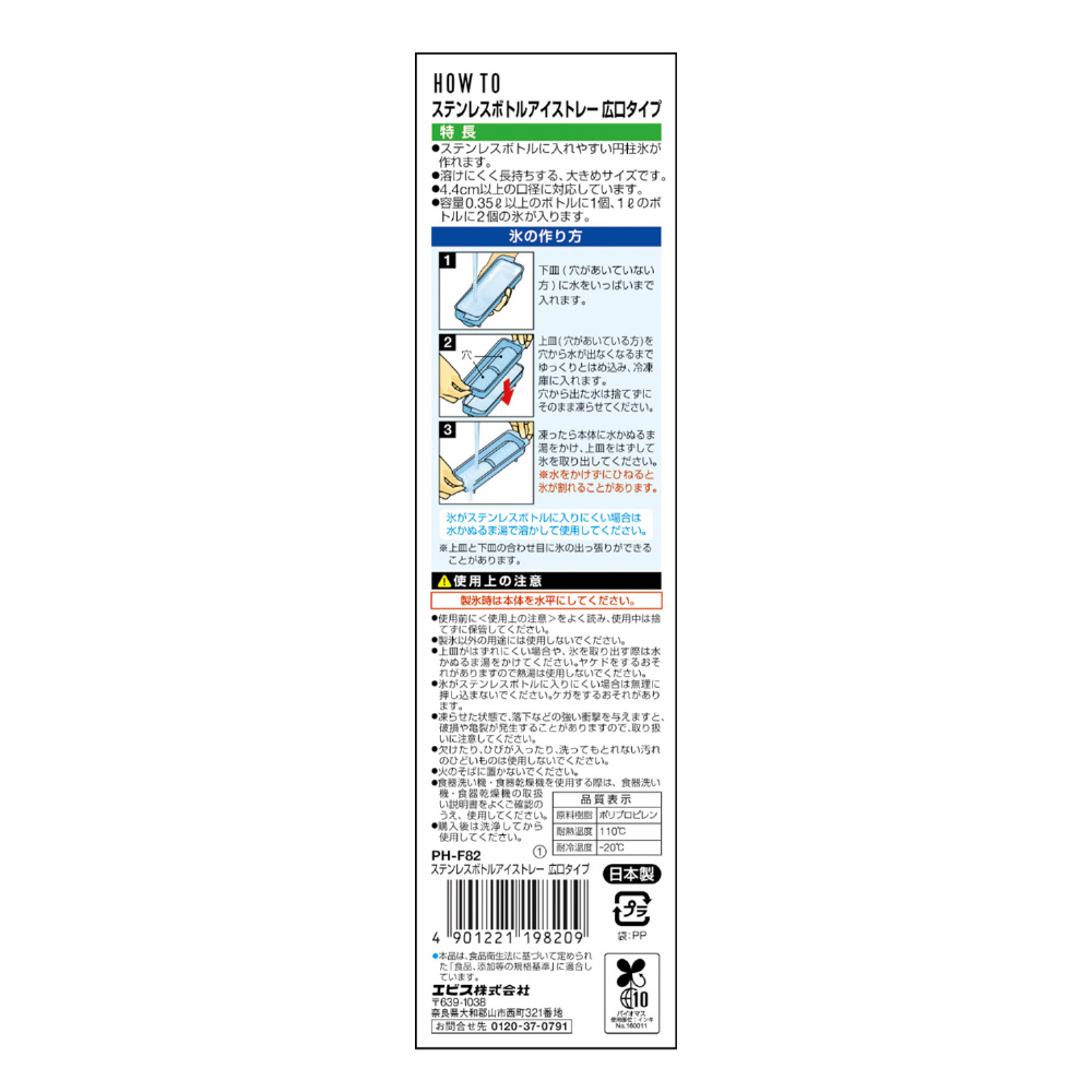 ステンレスボトルアイストレー 広口タイプ PH-F82