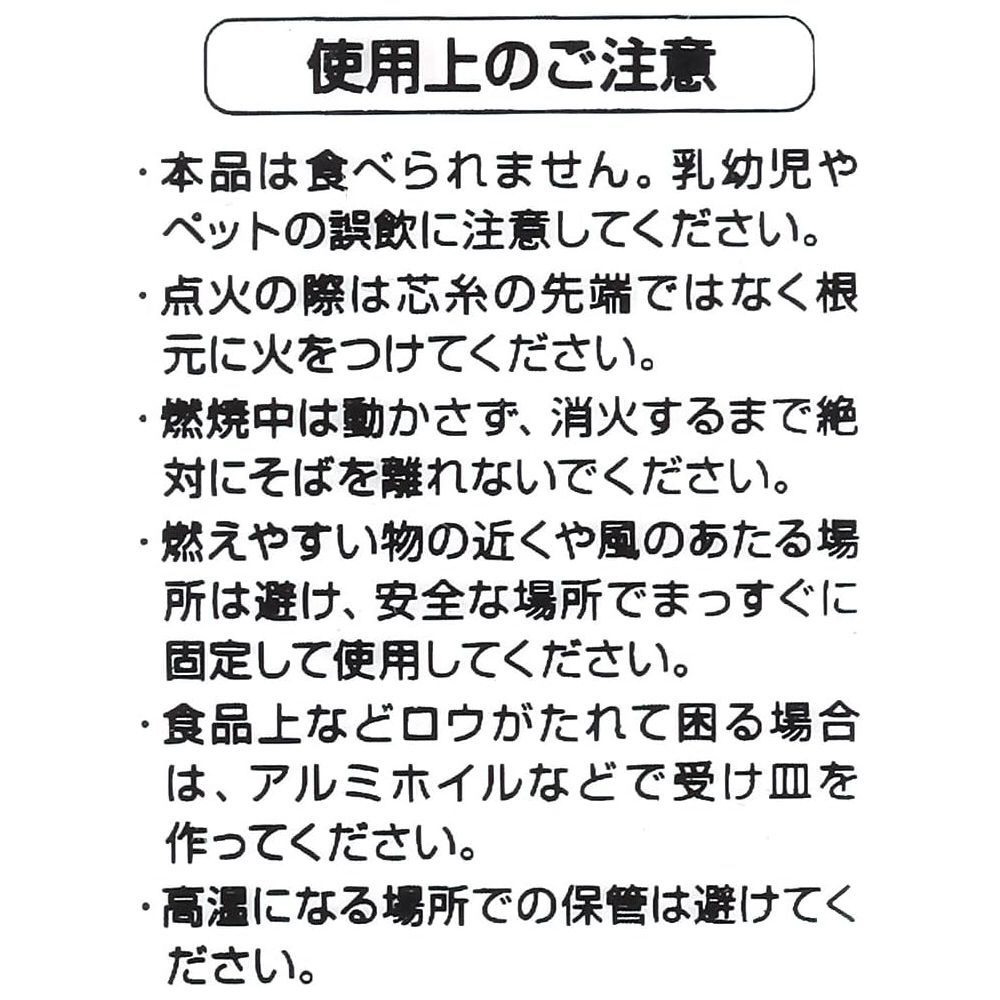 | 仕様3 | 材質:キャンドル:パラフィン、芯糸:綿、ピック:ポリエチレン |