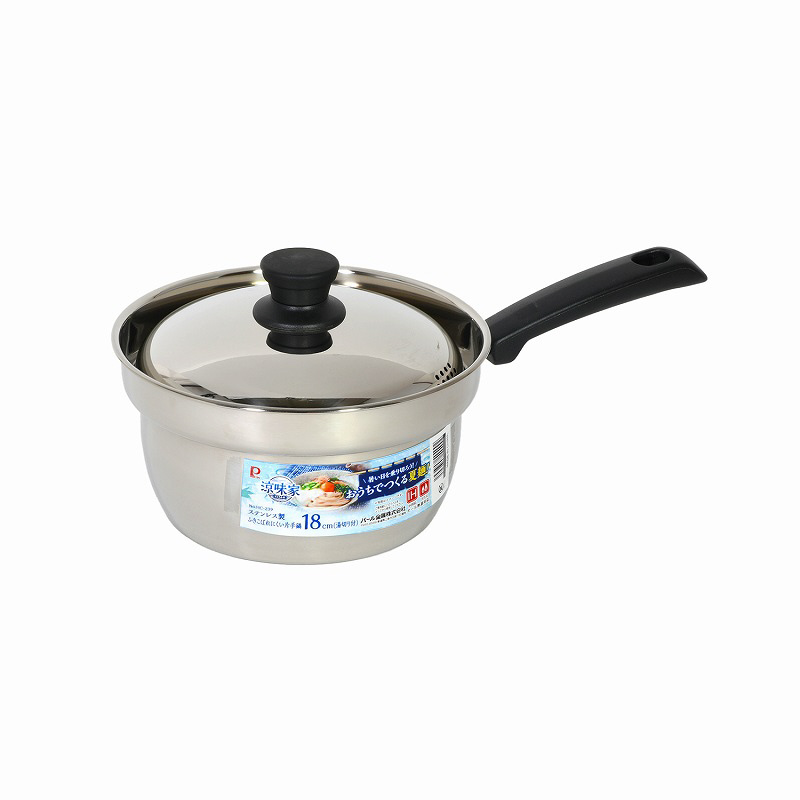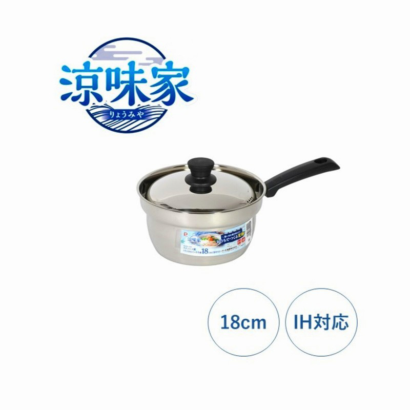 涼味家 ステンレス製 IH対応 ふきこぼれにくい片手鍋18cm 湯切り付 HC-0239 [IH対応]