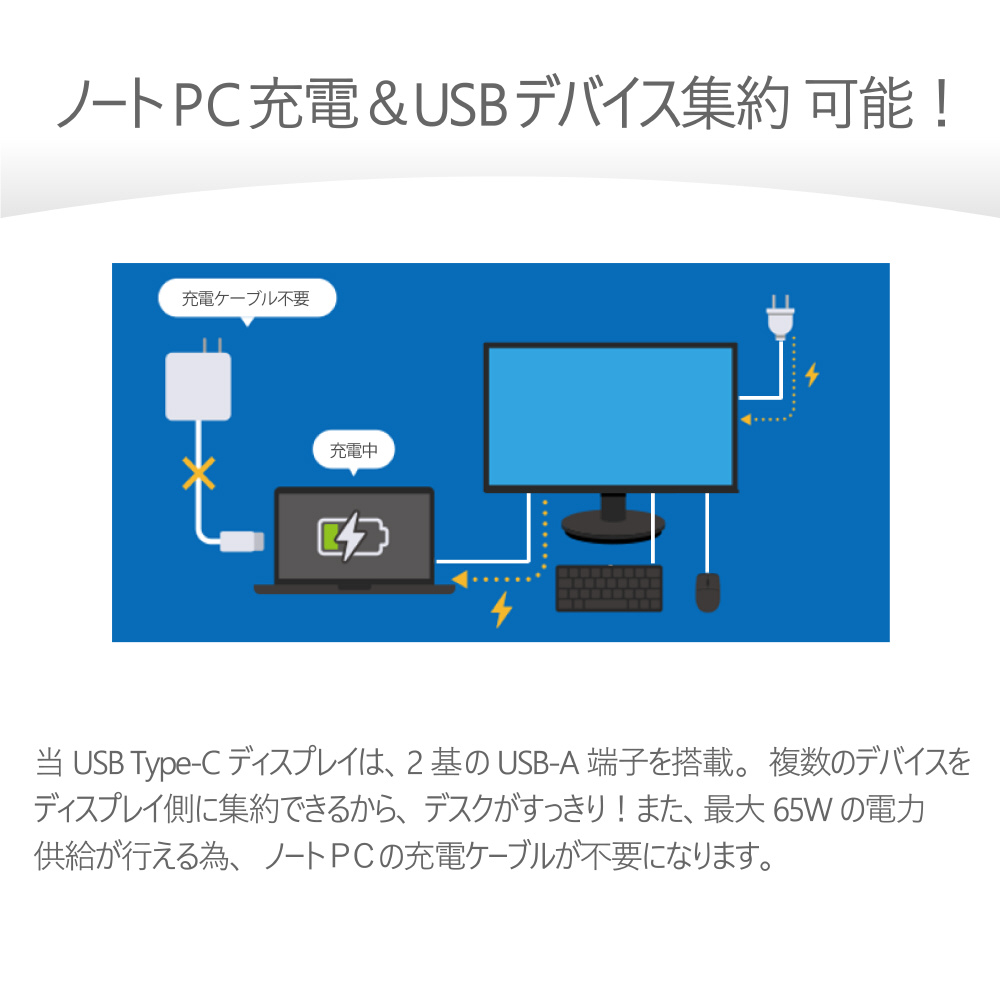 1台3役!映像表示はもちろん、充電スポット・USBハブとしても機能する多機能ディスプレイ。