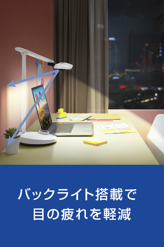 ●偏光照射設計により、PCモニター画面の反射を軽減し、キーボード操作や手書き作業に最適