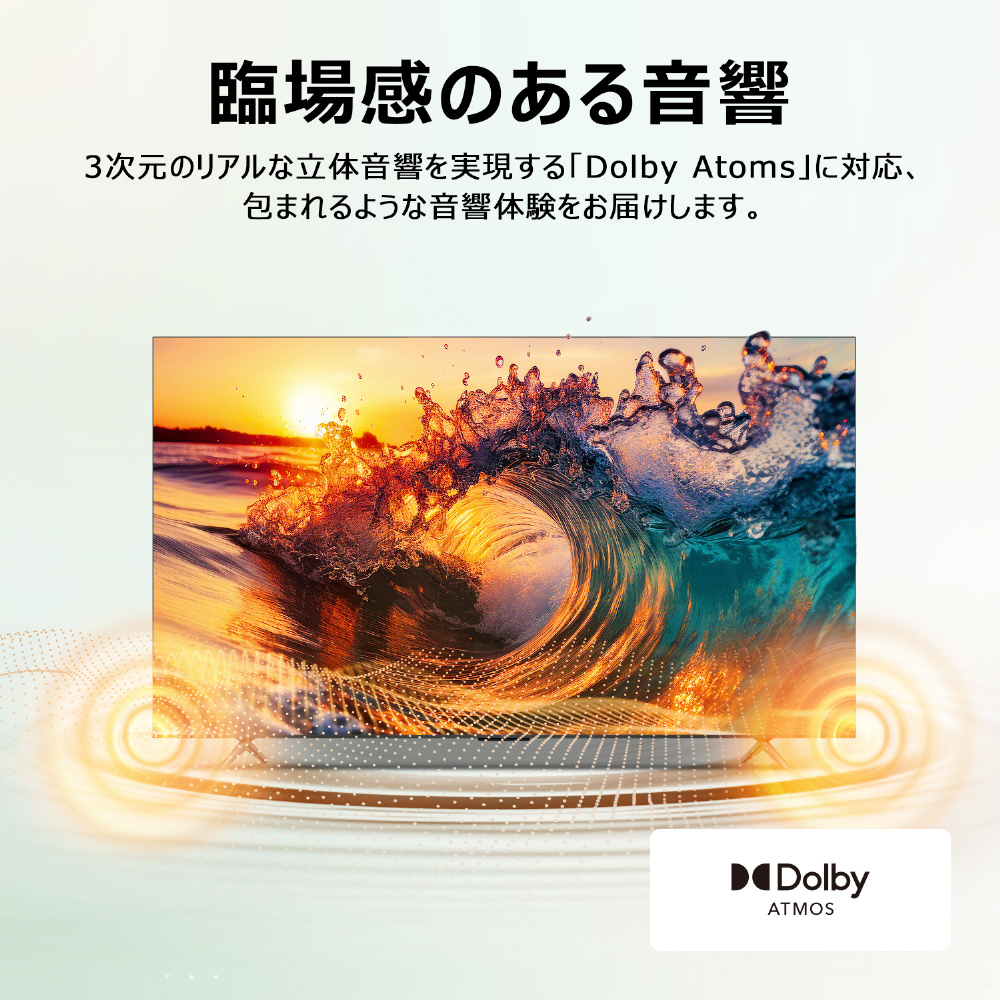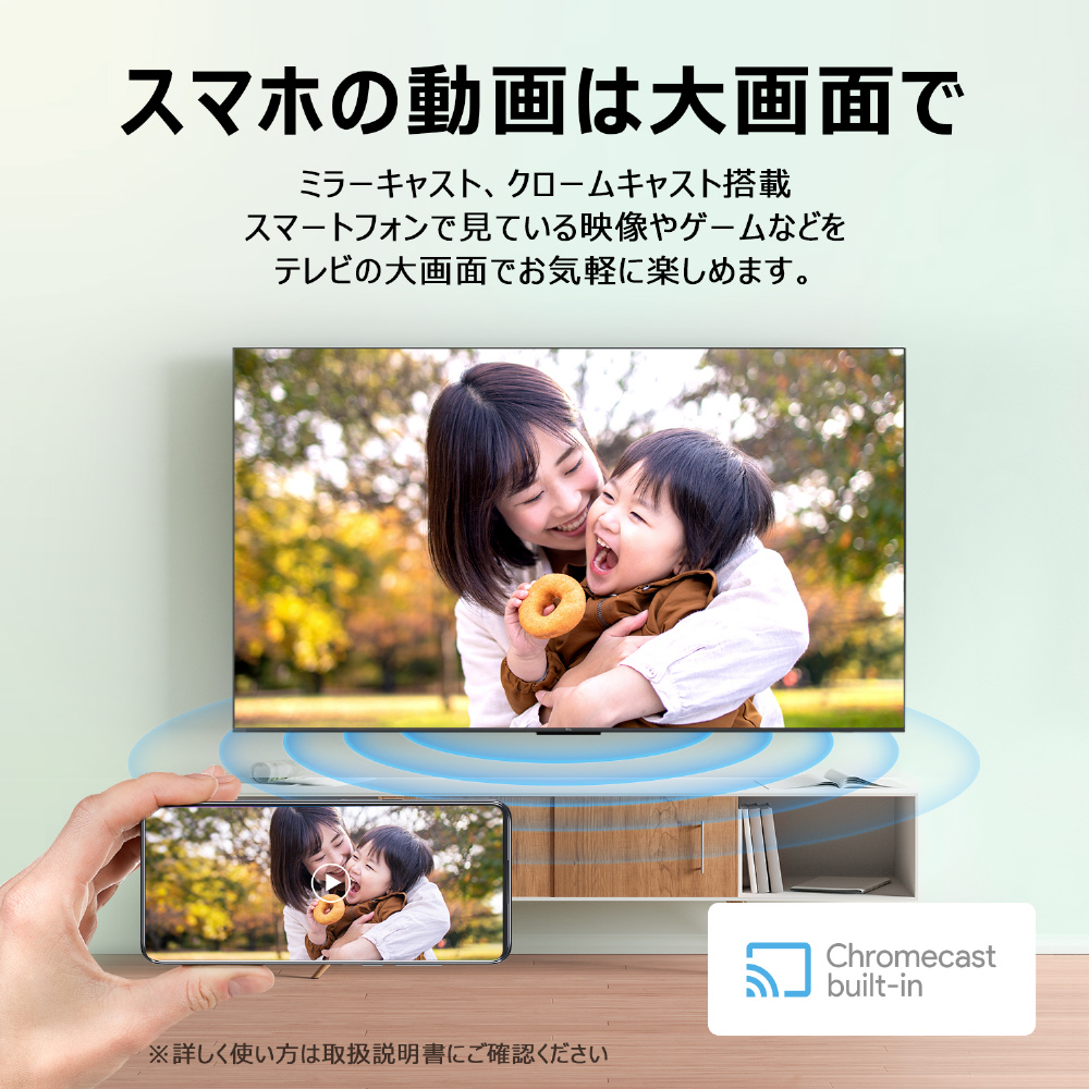 Google TV 搭載で、好みのコンテンツをホ ーム画 面 に 一 括 表 示できます。また、様々なアプリを通して、動画や音楽などのストリーミングサービスを楽しめます