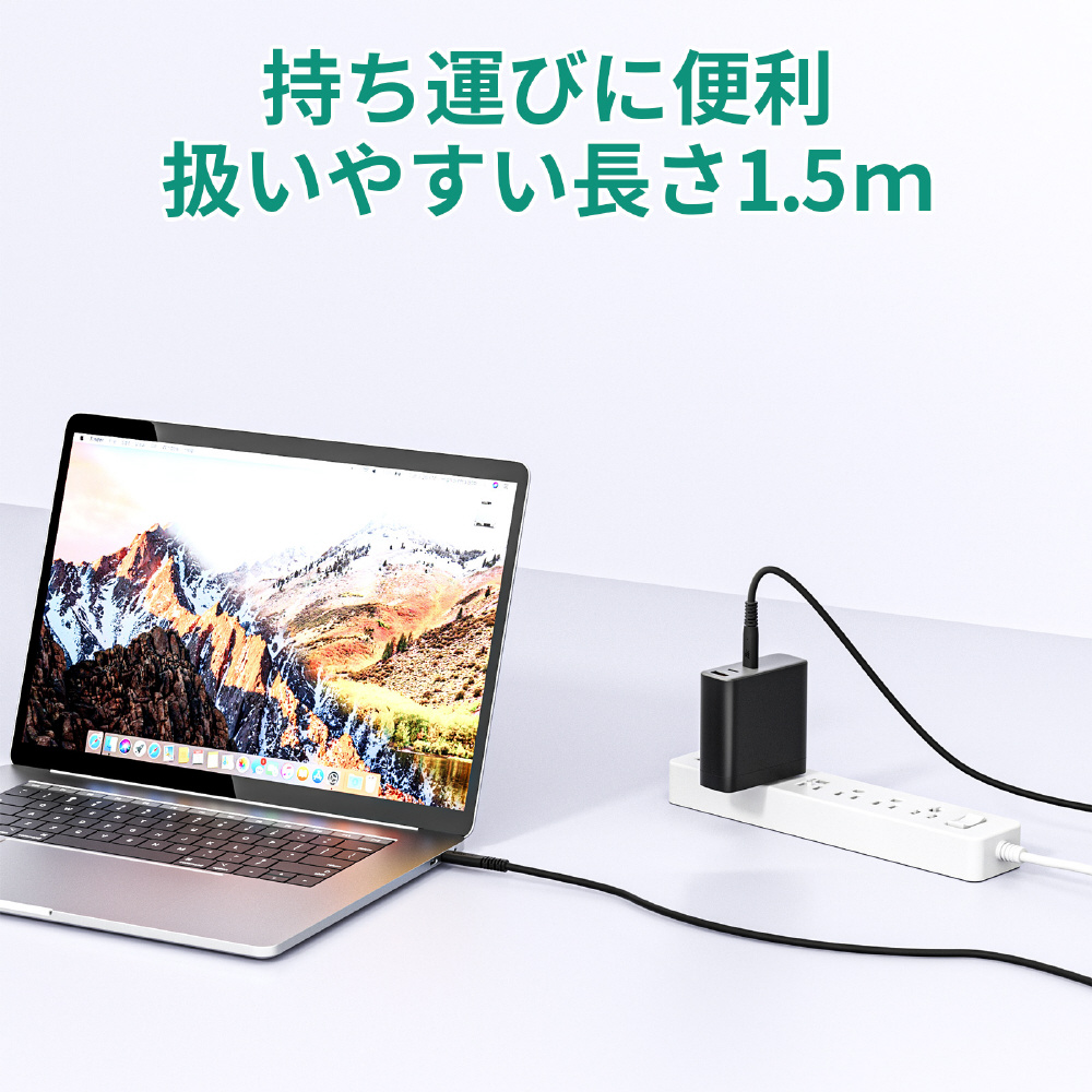 USB PD最大240W出力対応の高品質なUSB Type-C to C ケーブルCB-CD24は、スマートフォンからノートPCまでUSB-C端子を搭載した幅広い機器の急速充電に最適です。内蔵されたeMarkerにより、安全に安定した高出力の給電を行えます。