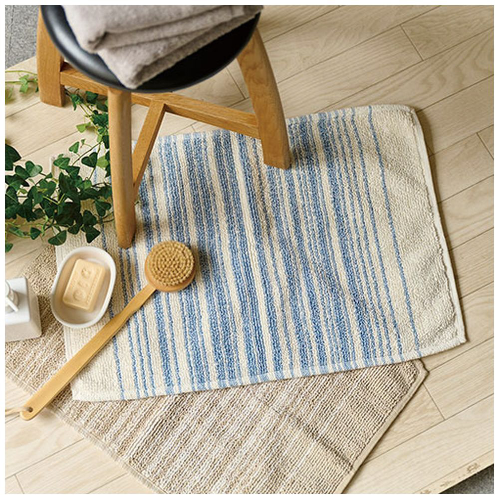 手織りの微妙な凹凸感とコットンならではの肌ざわりが心地よいバスマット。