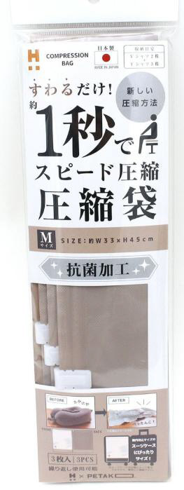 | 商品名 | 旅行用圧縮袋ペタコ3枚入り PT9ベージュ HPL7130-M |