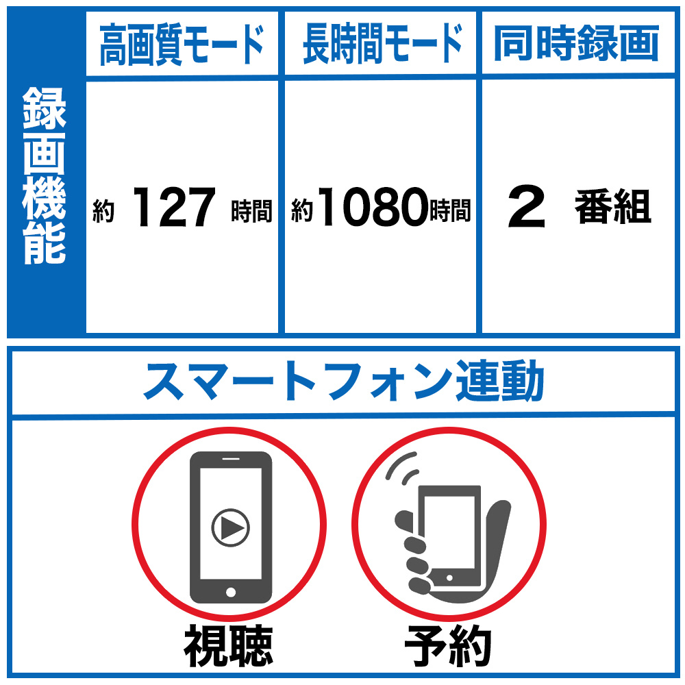 | 同時録画 | 2番組同時録画 |