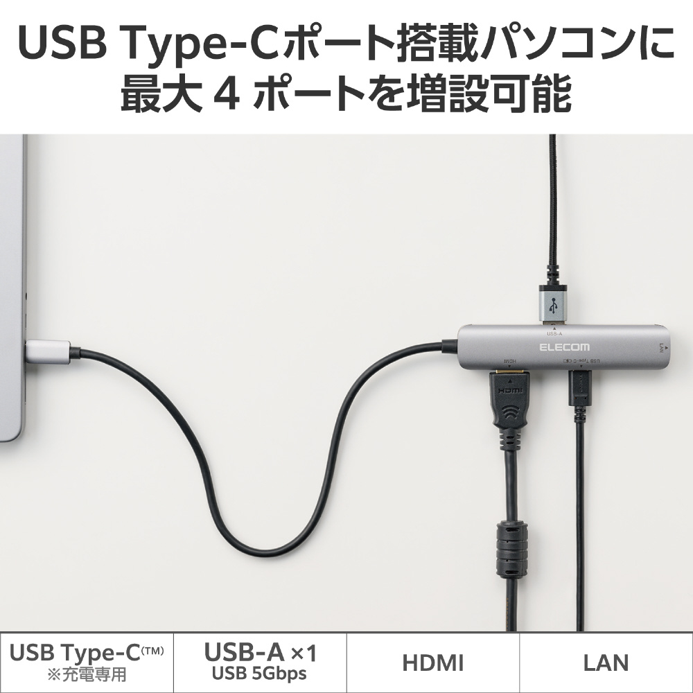 ■持ち運びに便利な4ポートのスリムタイプ。USB Type-C接続ドッキングステーション
