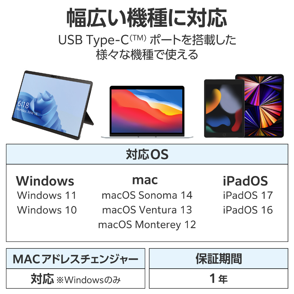 ※ USB Type-Cポートを標準搭載するパソコンでのみ使用可能です。