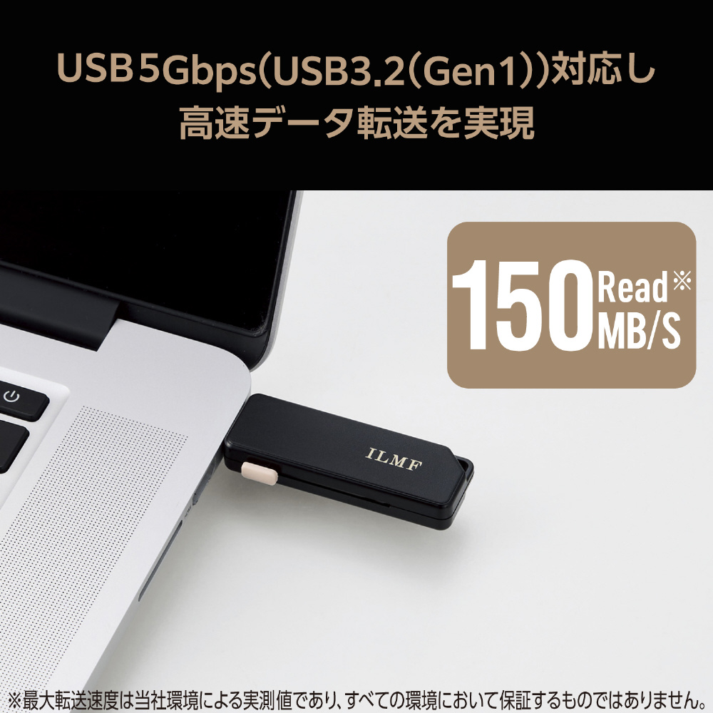 読み込み最大150MB/sの高速データ転送を実現するUSB 5Gbps(USB3.2(Gen1))メモリです。
