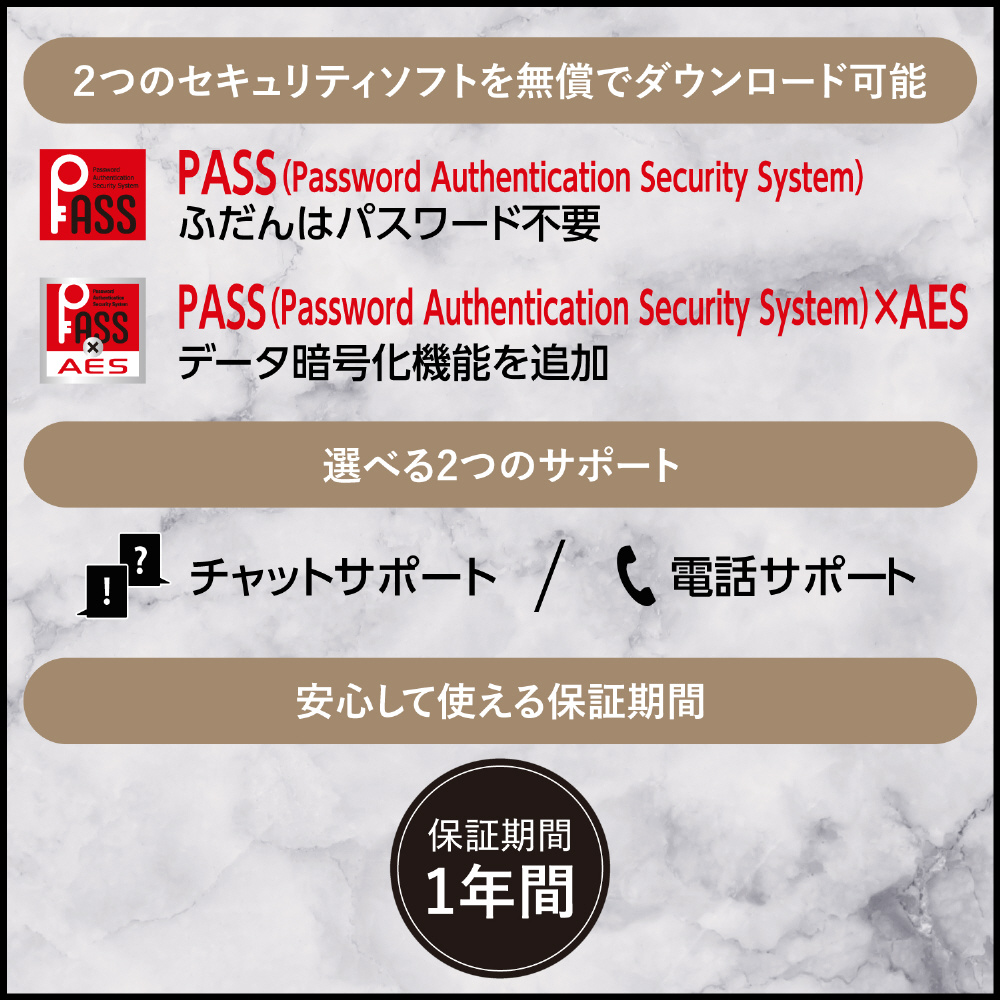 ■エレコム社Webサイトからダウンロードすることで、パスワード自動認証機能付暗号化セキュリティソフト「PASS(Password Authentication Security System)×AES」あるいは「PASS(Password Authentication Security System)」を使用可能です。