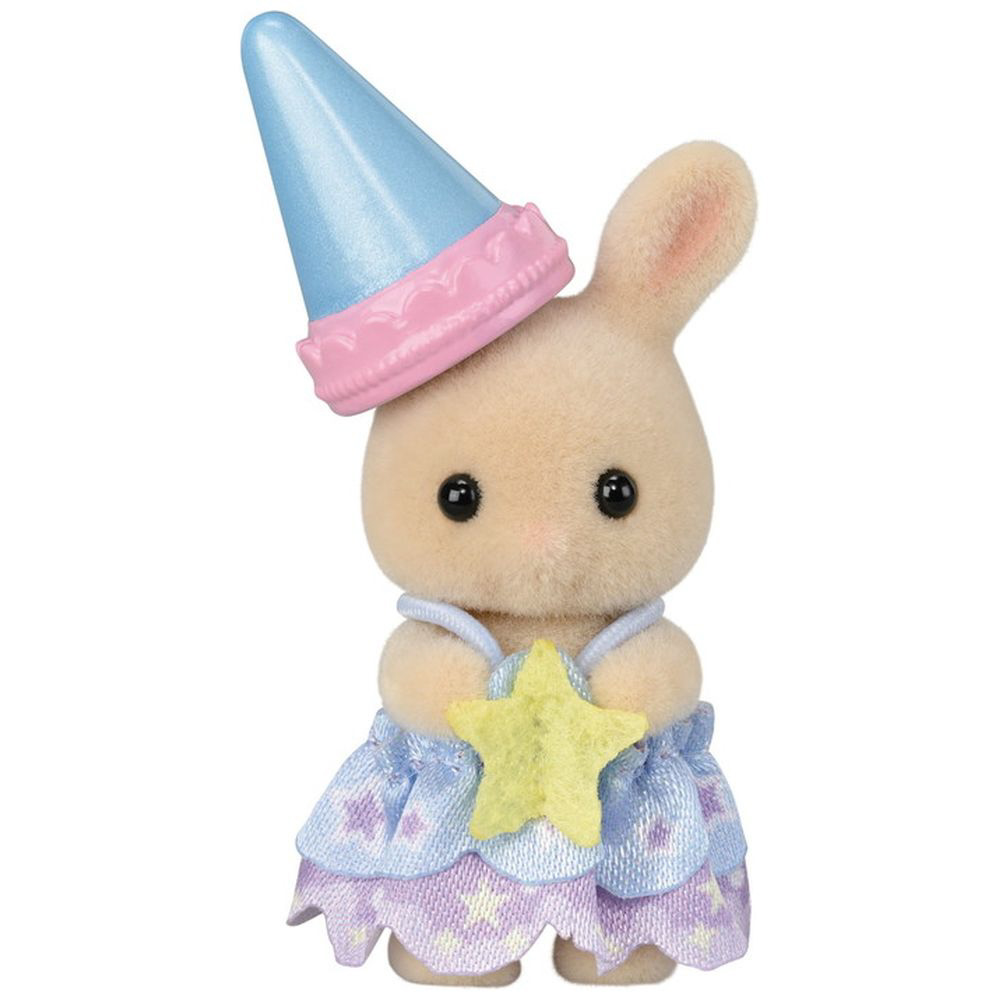魔法使い役のみるくウサギの小さい赤ちゃんは特別な衣装を着ています。